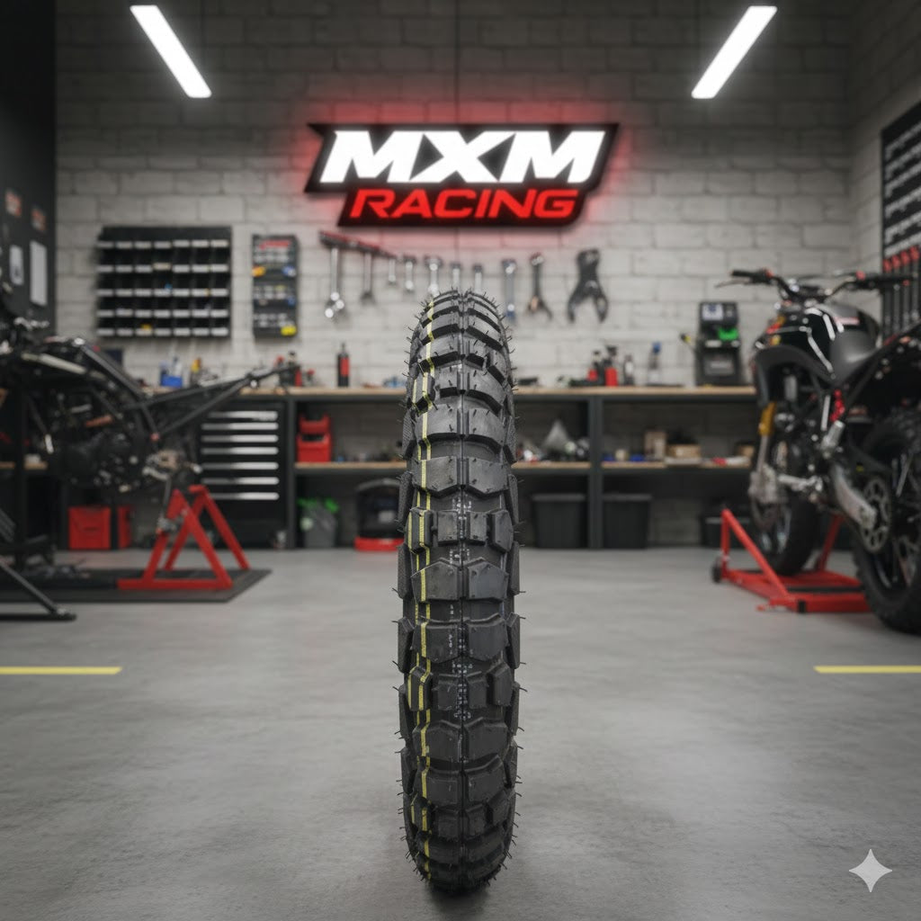 El compuesto de goma brinda buena durabilidad y un desgaste uniforme, mientras que el patrón intermedio permite evacuar lodo y mantener tracción en zonas sueltas, pero sin generar vibraciones molestas cuando vas en carretera. Es la opción ideal para motos de uso diario, aventuras ligeras y rutas mixtas.